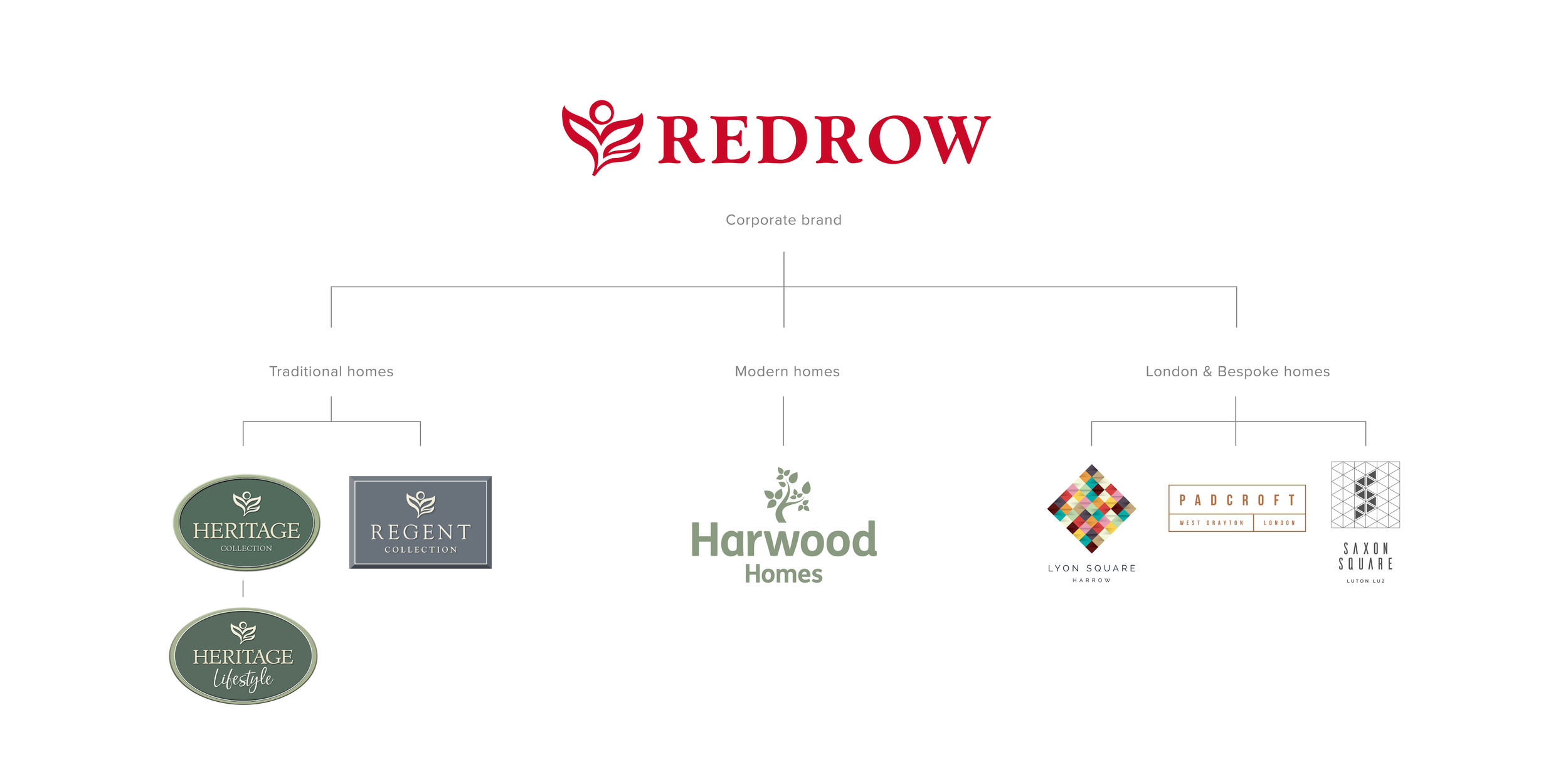 The first thing we did was fix the hierarchy problem. Redrow is a well-recognised name in the sector so it needed to be at the fore-front of its brand and not underneath its products.